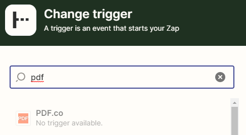 Já no segundo desafio, a plataforma Zapier estava informando que o PDF.co, que é utilizado no enunciado do desafio, não está disponível como trigger, impossibilitando de finalizar o desafio no momento.