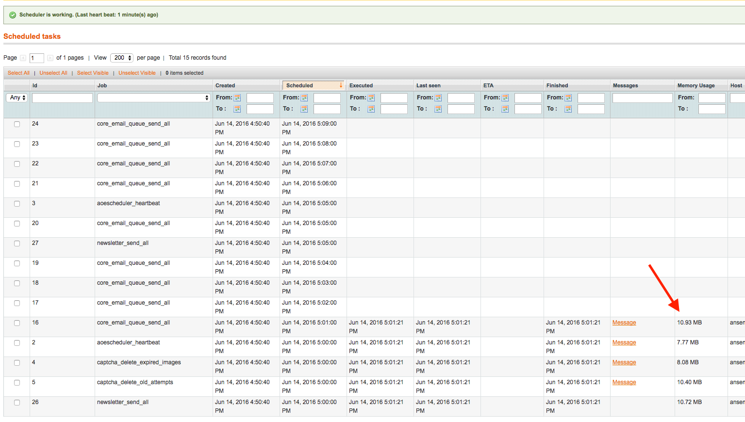 Adds a filterable and sortable column that shows how much memory was used while running a job.