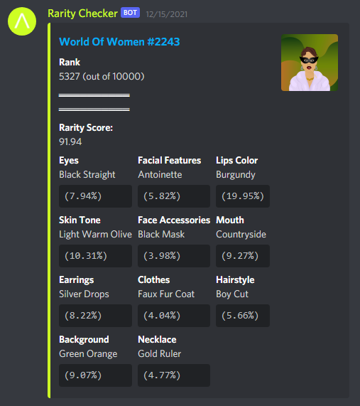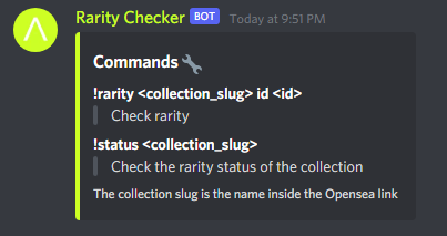 Discord bot that allows users to check rarity of an NFT