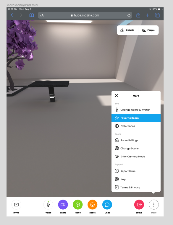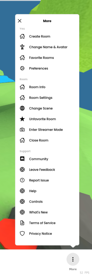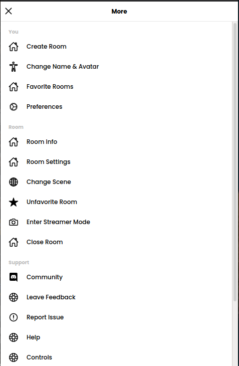- Room Info is currently shown for all users as long as the room has a scene that was created in Spoke (most scenes are). We could show this item only if you are not a room moderator. For room moderators, we can make all of this info available in the Room Settings sidebar.