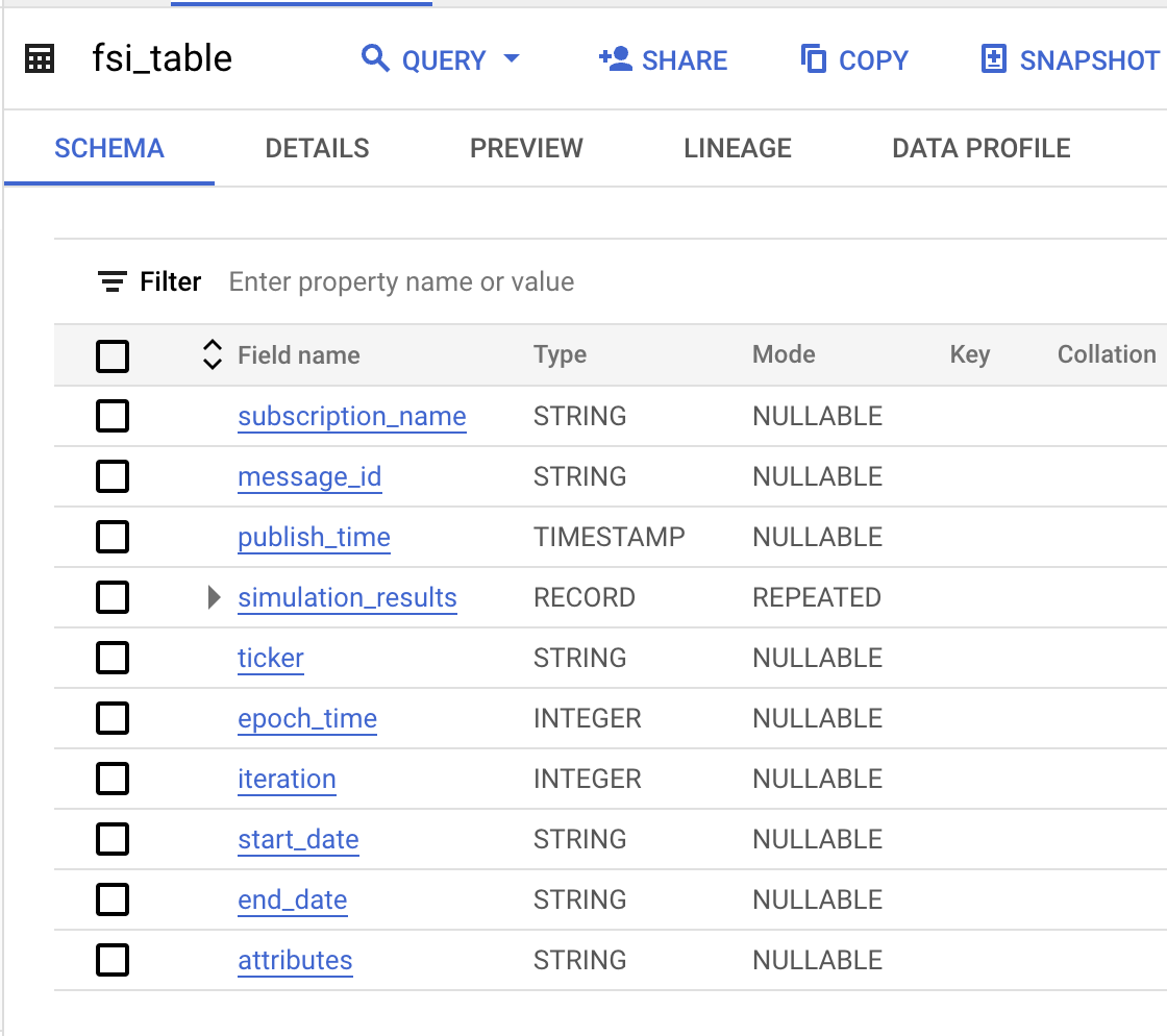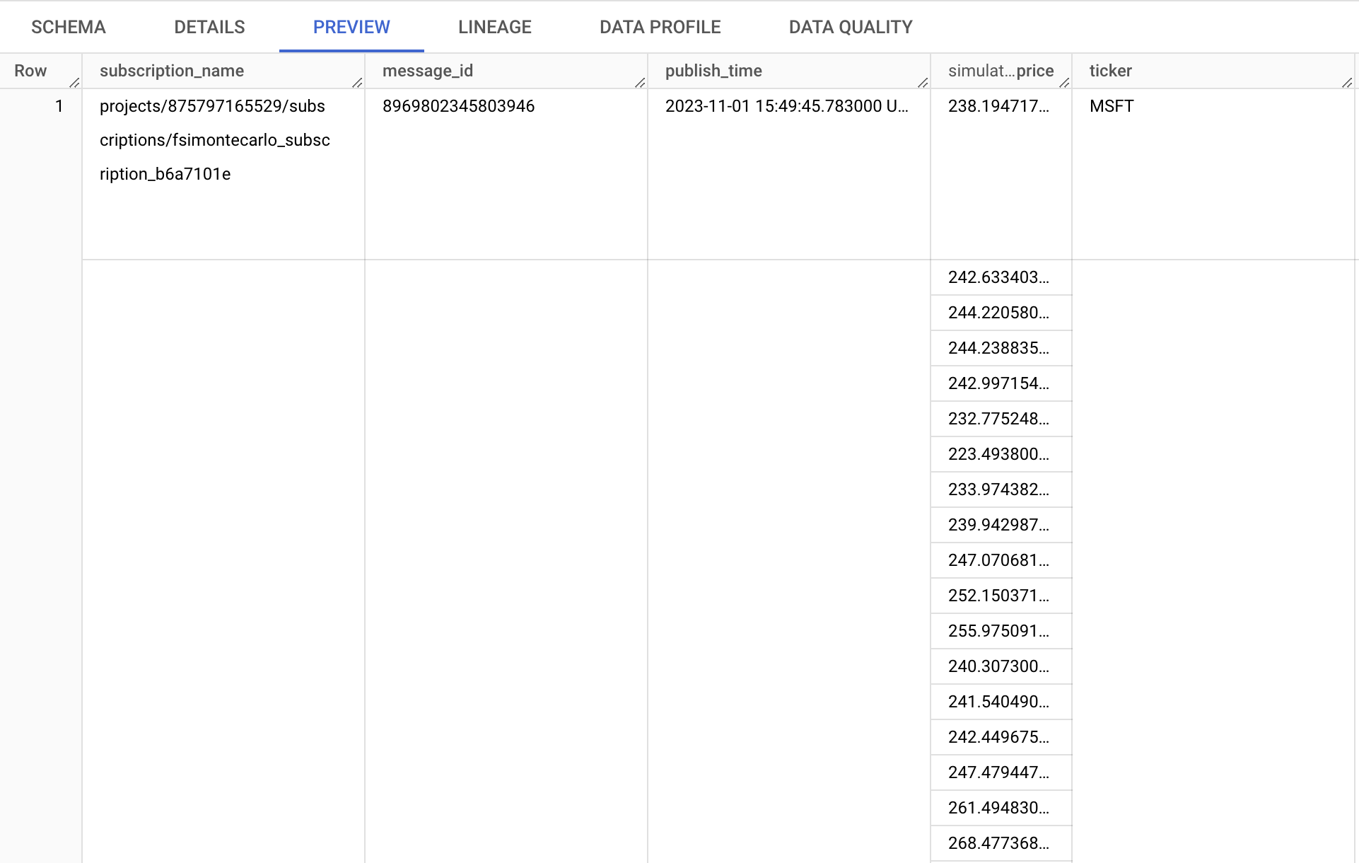The batch job runs Monte Carlo simulation for the VaR calculation. The output from each run is stored in BigQuery. To view this data in it's raw form, you can view BigQuery in the Cloud Console: