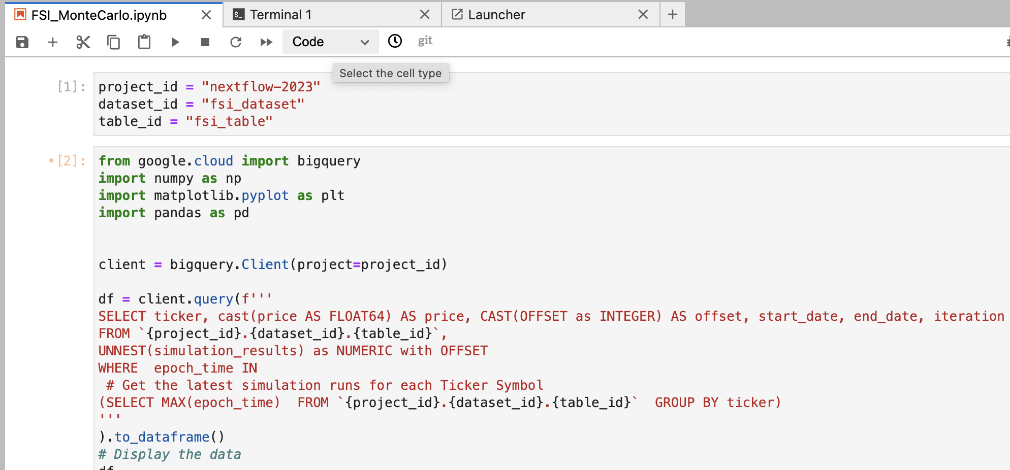 Finally, you can select the FSI_MonteCarlo.ipynb from the left navigation in