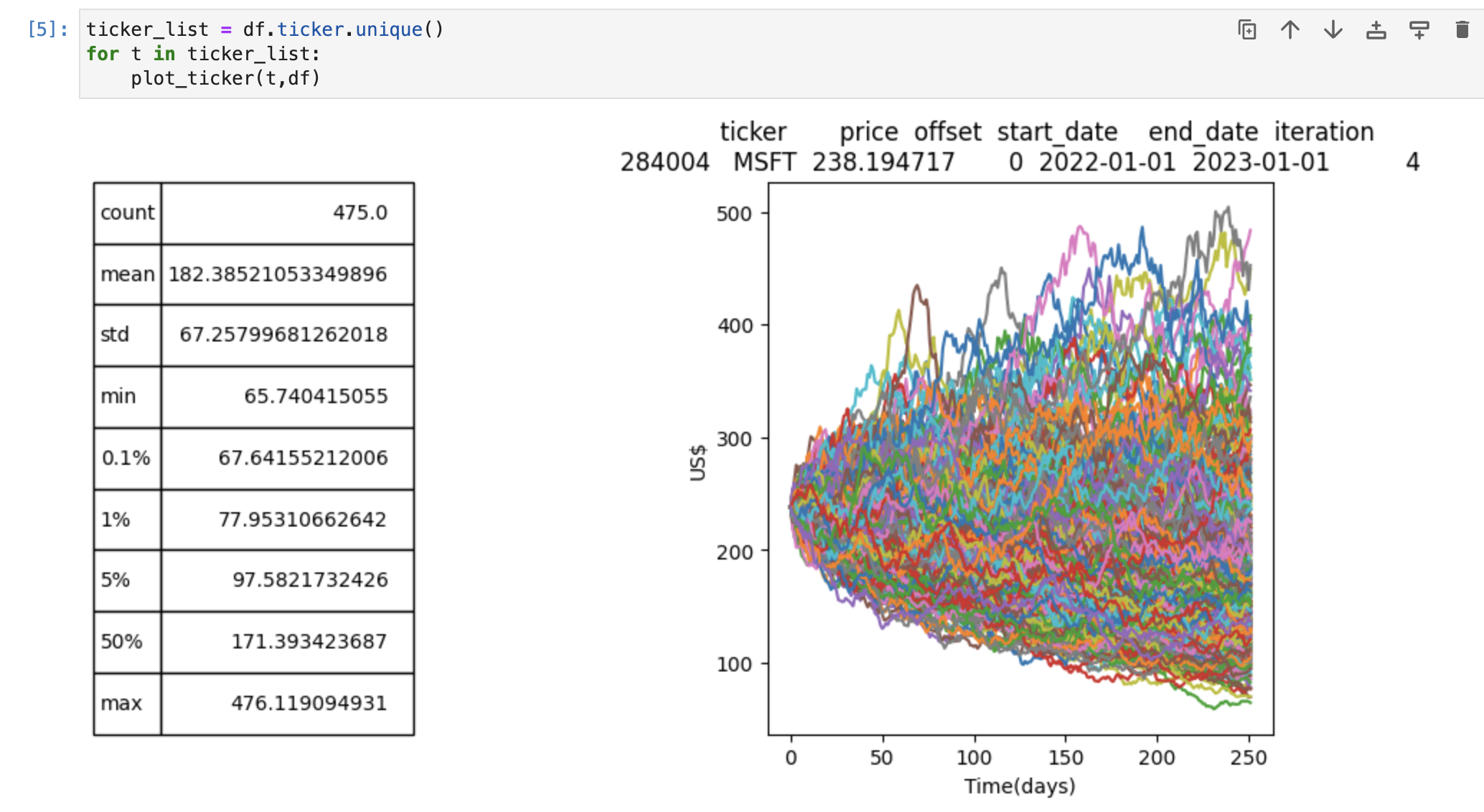 - You ran a MonteCarlo simulation for VaR on several stock tickers.
