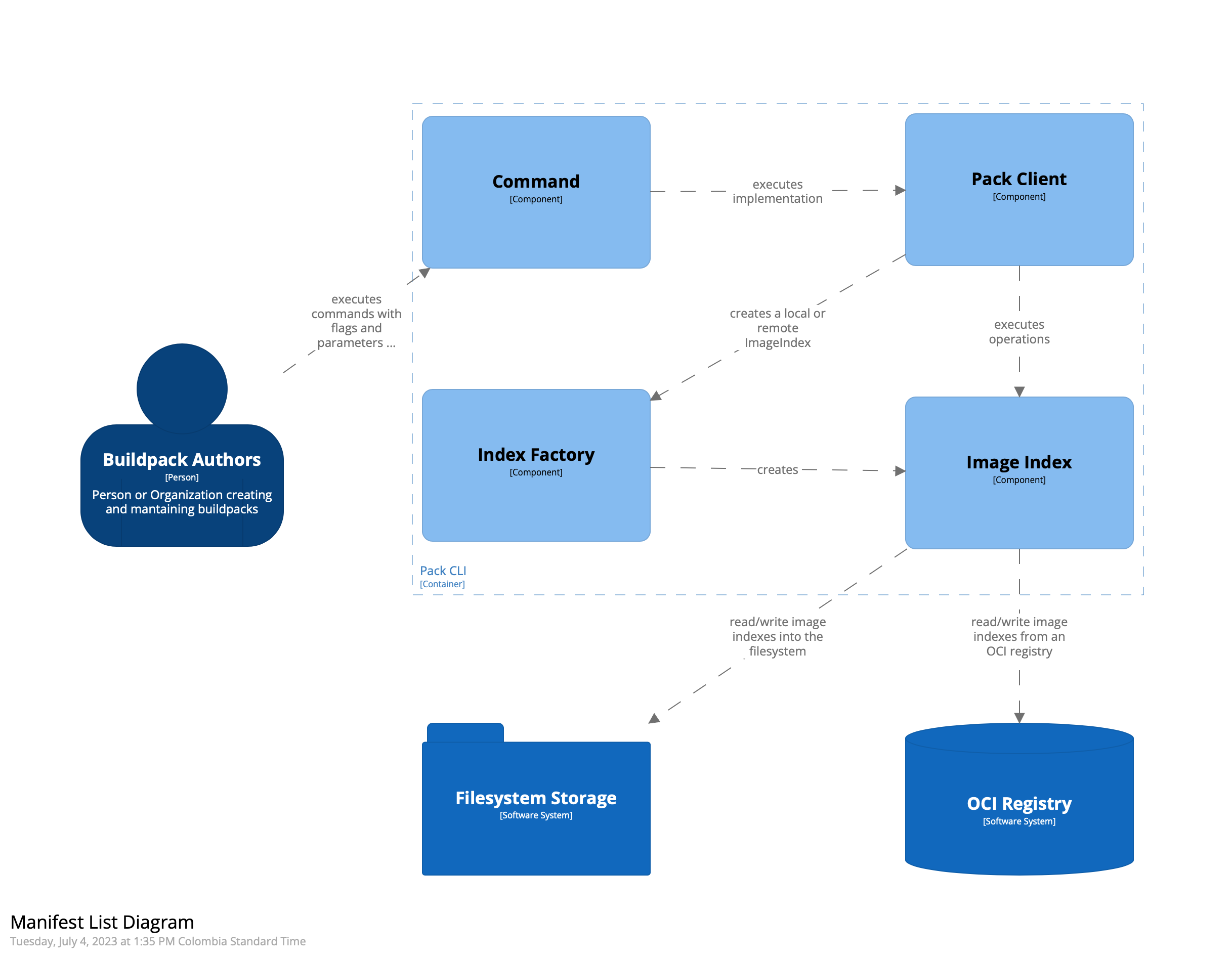 Using a C4 component diagram, we can define the high level interaction on pack. This design follows the same pattern for each command already implemented.