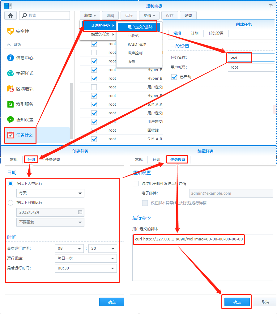 接下来在群晖里找到控制面板中的任务计划,新增一个计划任务用户定义脚本;