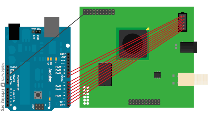 | Dumb and simple. Number of pins dependent on Arduino (Teensy++ for 46) or RaspberryPi (26 by default). Arduino's available in 3.3v or 5v versions. RaspberryPi 3.3v. Odroid X4U for 1.8v. Or see Voltage Shifting Appendix for voltage level shift configurations | ||||