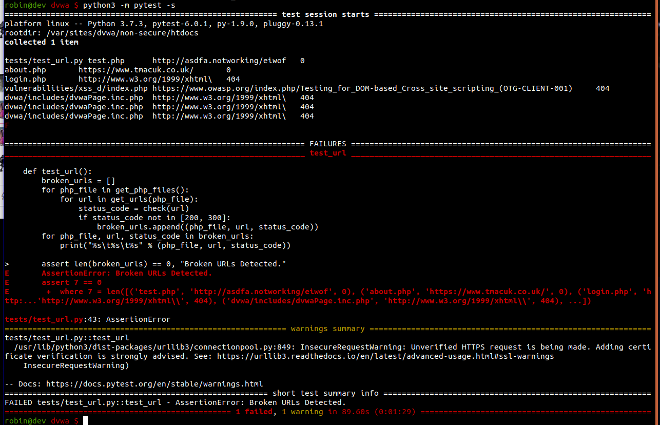 It wasn't working from the document root, but is now, very odd. Should it detect every broken link or stop at the first? It has picked up one in about.php but there is at least one more that I deliberately created to see if it would spot it. |