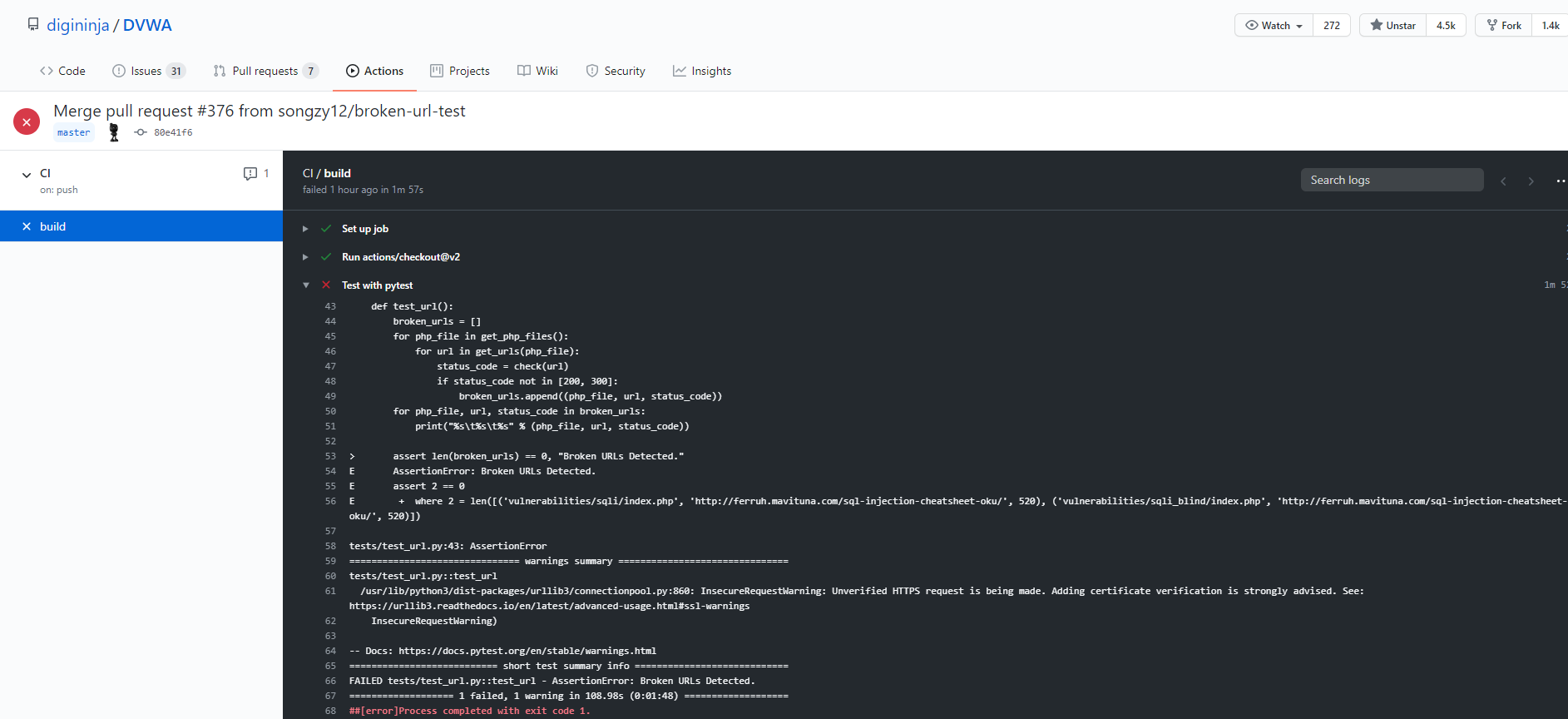 As it merged I got this alert: https://github.com/digininja/DVWA/actions/runs/234266677 All the links are fixed, do you need to do something so it returns 0 rather than 1? |