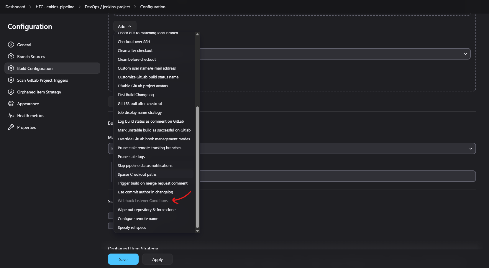 The Webhook Listener Conditions under additional traits for GitLab Branch Source Plugin is grayed out for me,