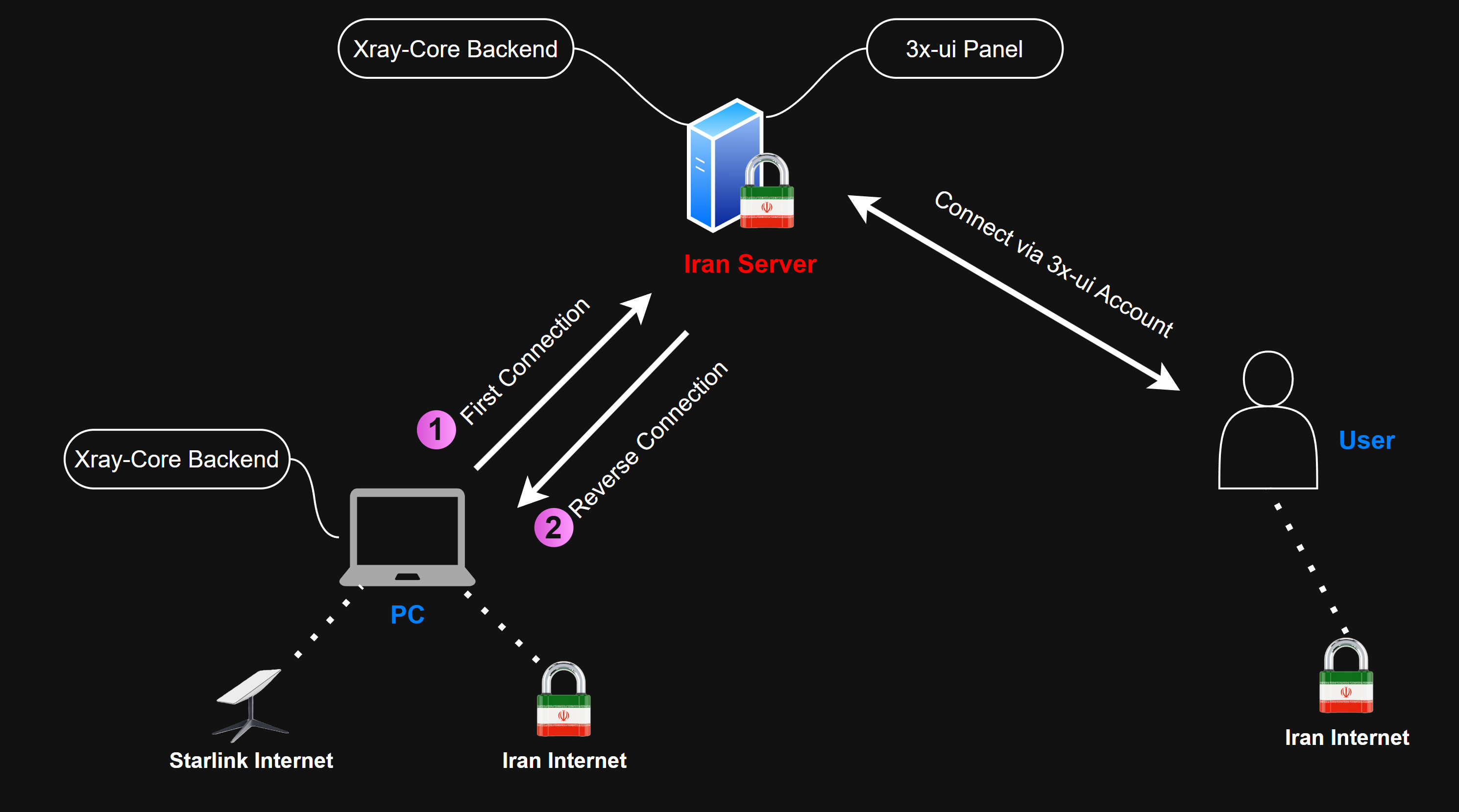 این پروژه یک راه حل برای ارتباط با "استارلینک" در شرایط قطعی کامل اینترنت (حتی قطعی اینترنت دیتاسنتر ها) ارائه میده