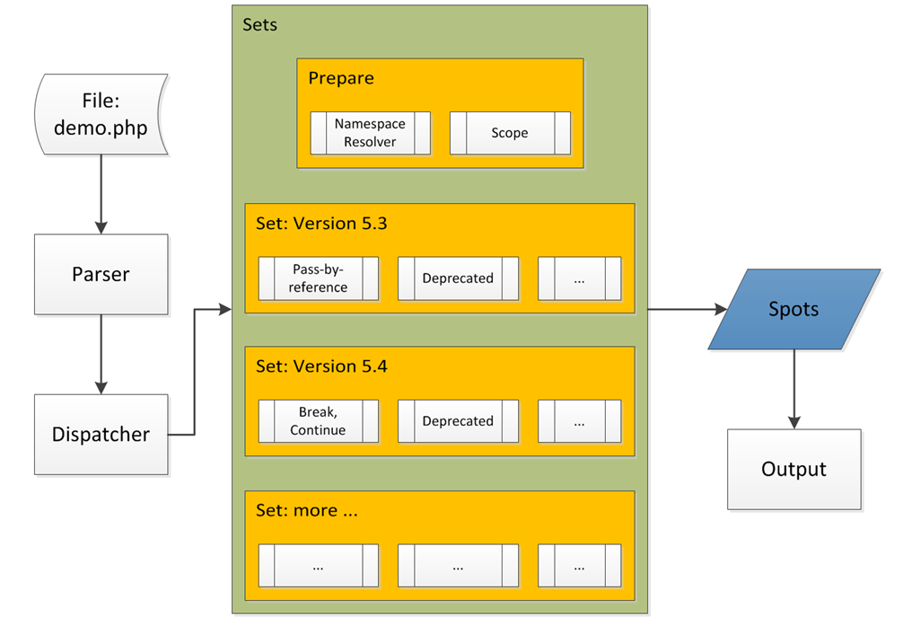 PHP Compatibilityis a set of sniffs forPHP_CodeSniffer, therefore it lacks flexibility and can not checks more changes. just objective comparison