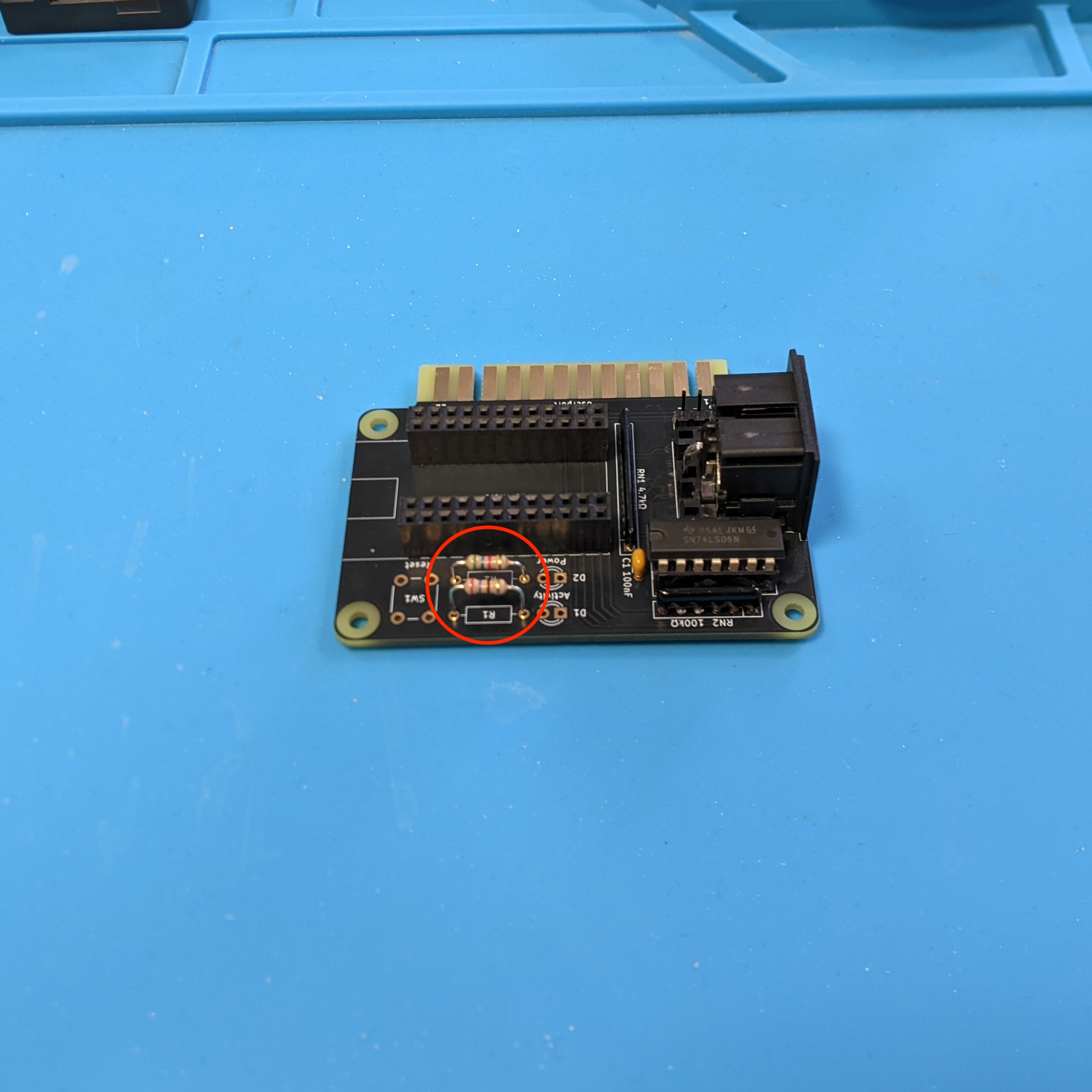 Because you are not installing resistor network RN1, you have to close five solder jumpers on the bottom of the PCB.
