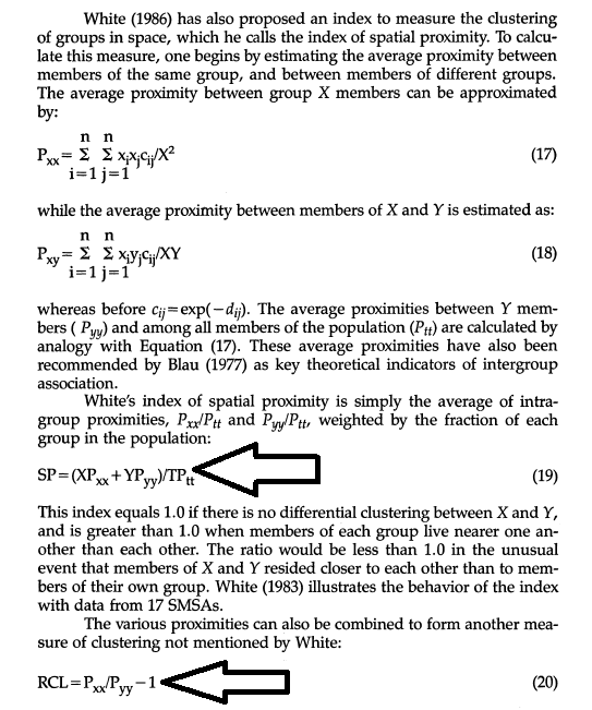 @knaaptime , the original version is the one that follows Massey and Denton. If we look closer at formulas (19) and (20) which are, respectively, Spatial Proximity and Relative Clustering, they both use the definition of Pxx and Pyy, which is our original implementation.