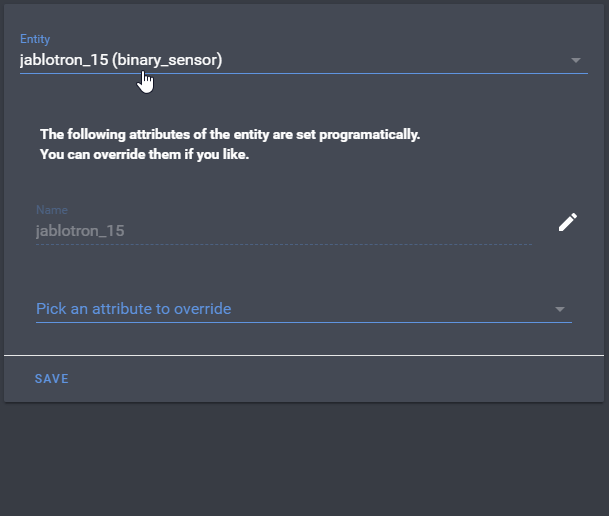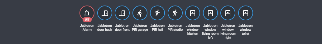 Here you'll see a Jablotron PIR sensor working as a binary_sensor, detecting motion: