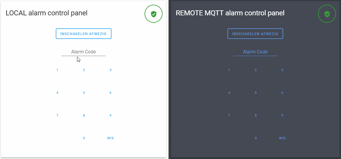 - On the remote host you need to setup a MQTT alarm control panel. For example: