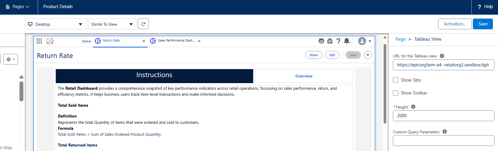 | 1. | Show Retail Dashboard | From the home page of Data Cloud, click on Agent and make sure Analytics and Visualization are selected. Ask the question it provides and the Retail Dashboard URL, and on clicking it , it will navigate to the Dashboard page. | Dashboard Display | Display Tableau Dashboard Url(Prompt Template) |