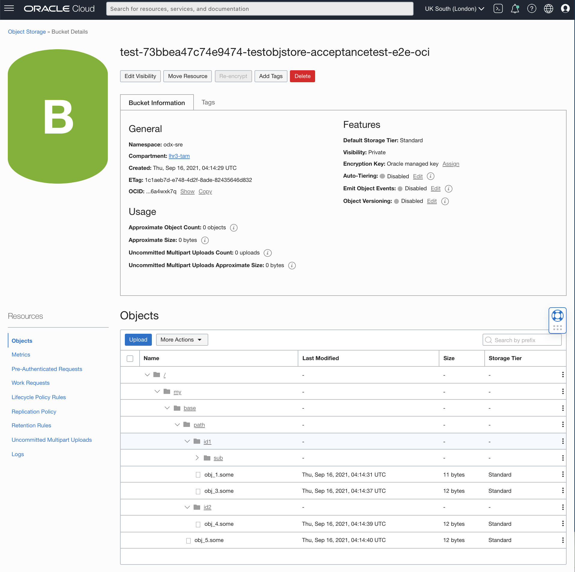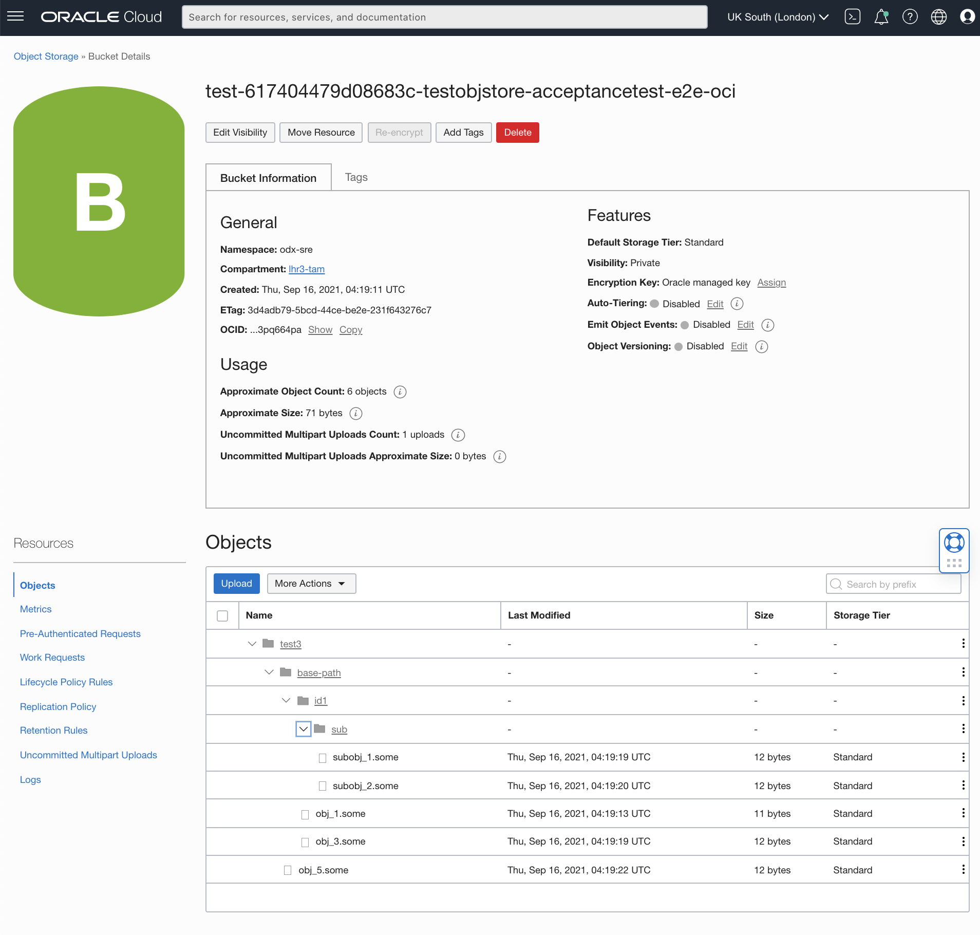 Ran three tests with different OCI_OBJECT_BASE_PATH settings. Below are the screenshots from Oracle Cloud Infrastructure console to show the object paths when the tests were running.