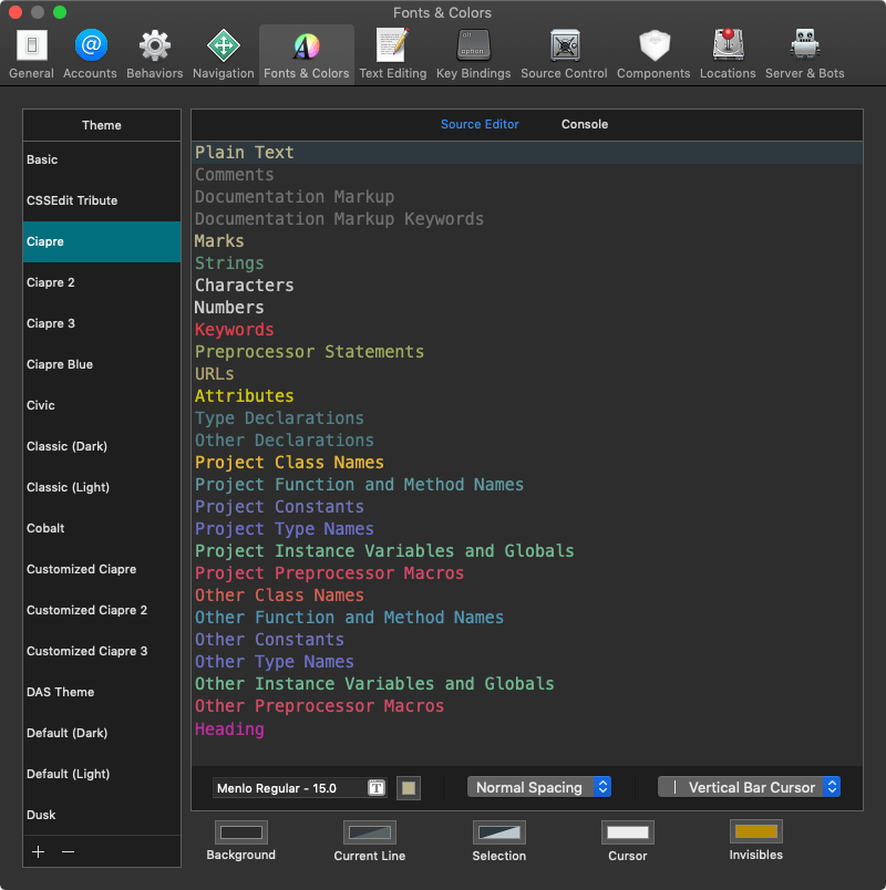 An easy on the eyes Xcode color scheme, ported from Ciapre Sublime Text.