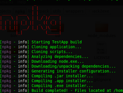npkg is a utility that generates cross-platform installation packages for NodeJS applications