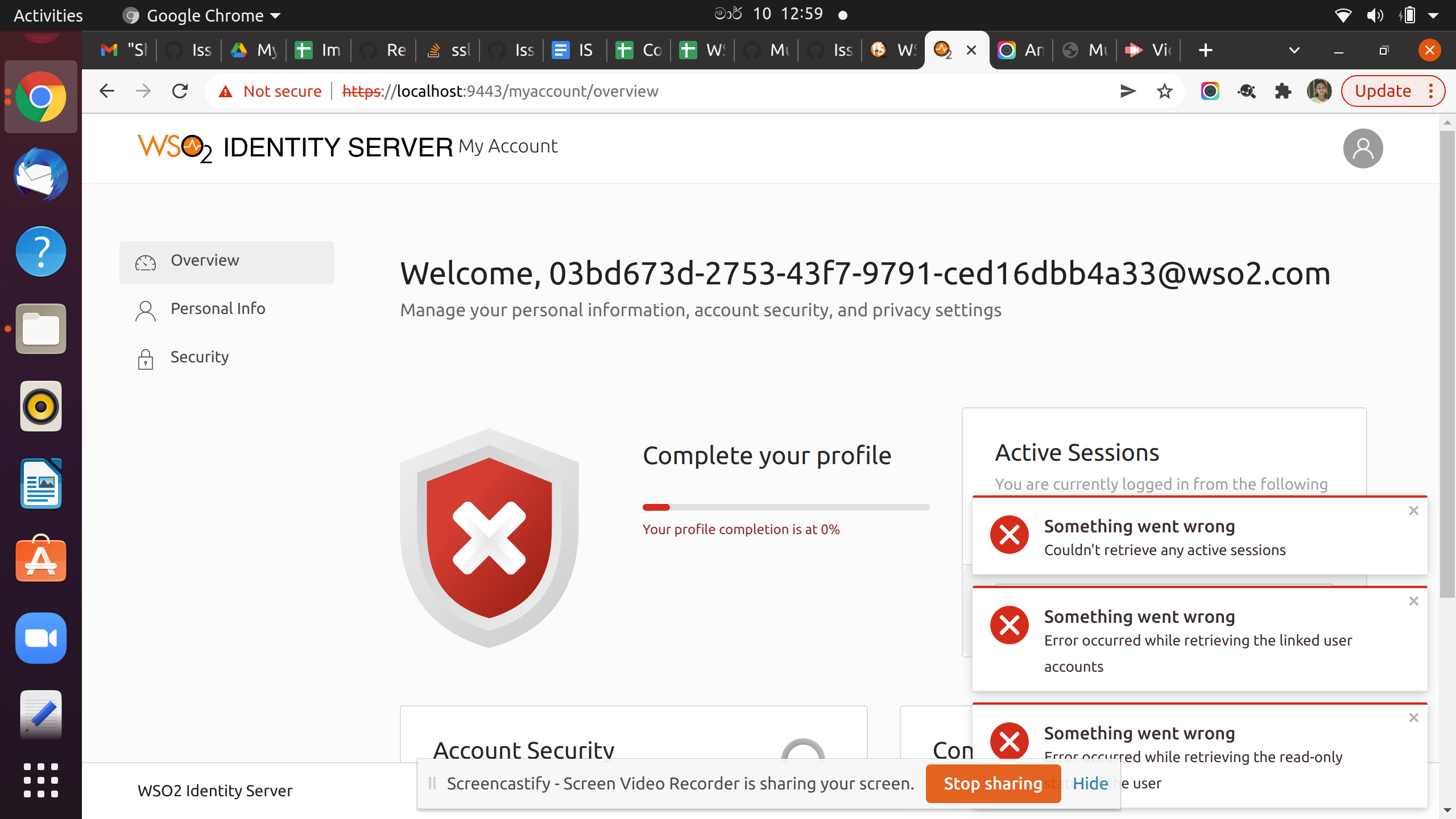 - Access my account as https://localhost:9443/authenticationendpoint/login.do?client_id=MY_ACCOUNT&code_challenge=q2NrYf53vxb5qR3iuH0ecXZ80ALIZfElEQDksGZmHz4&code_challenge_method=S256&commonAuthCallerPath=%2Foauth2%2Fauthorize&forceAuth=false&passiveAuth=false&redirect_uri=https%3A%2F%2Flocalhost%3A9443%2Fmyaccount&response_mode=form_post&response_type=code&scope=openid+openid+SYSTEM&tenantDomain=carbon.super&sessionDataKey=96c08ed3-7a13-4af5-8275-612079e73998&relyingParty=MY_ACCOUNT&type=oidc&sp=My+Account&isSaaSApp=true&authenticators=BasicAuthenticator%3ALOCAL ( This URL was generated in the browser with a previous myaccount login attempt as super admin)