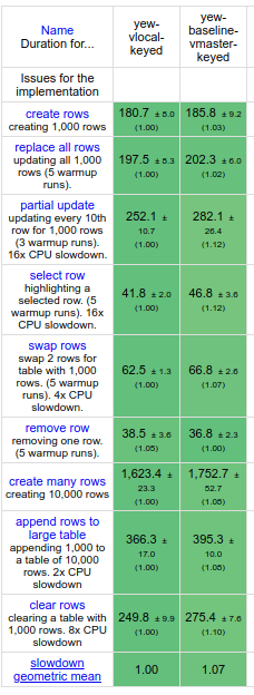 render()andrendered()calls.view()calls - they have been moved to the render lifecycle event.ComponentStatememory footprint.Benchmark results: